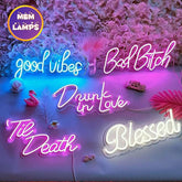 Blue Good Vibes Neon SignElevate Your Space with the Blue Good Vibes Neon Sign Elevate the atmosphere of any room with the Blue Good Vibes Neon Sign. Its beautiful blue hue and inspiring message add a touch of positivity and style to your space. Hang it on a...