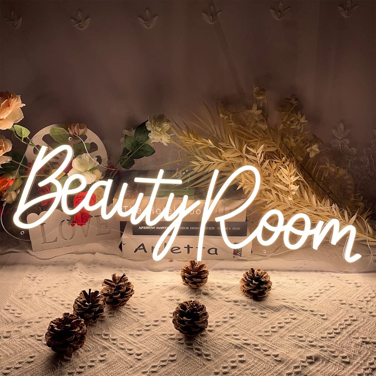 Elevate your beauty routine and create a stylish ambiance with the Beauty Room neon sign. This eye-catching sign adds a touch of glamour to any beauty room or salon. The vibrant colors and elegant design instantly draw attention and create a captivating atmosphere. Whether you're a beauty professional or a makeup enthusiast, this neon sign is the perfect addition to showcase your passion for all things beauty. Illuminate your space and let the Beauty Room neon sign inspire your creativity and enhance your beauty experience.