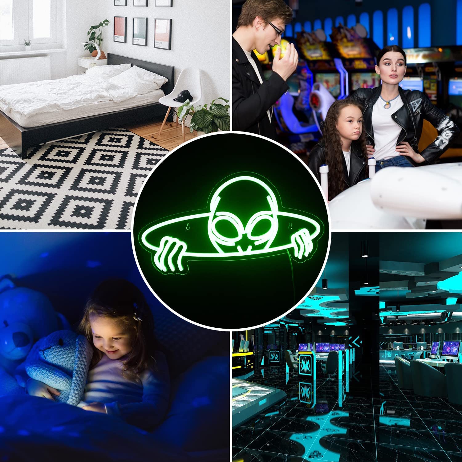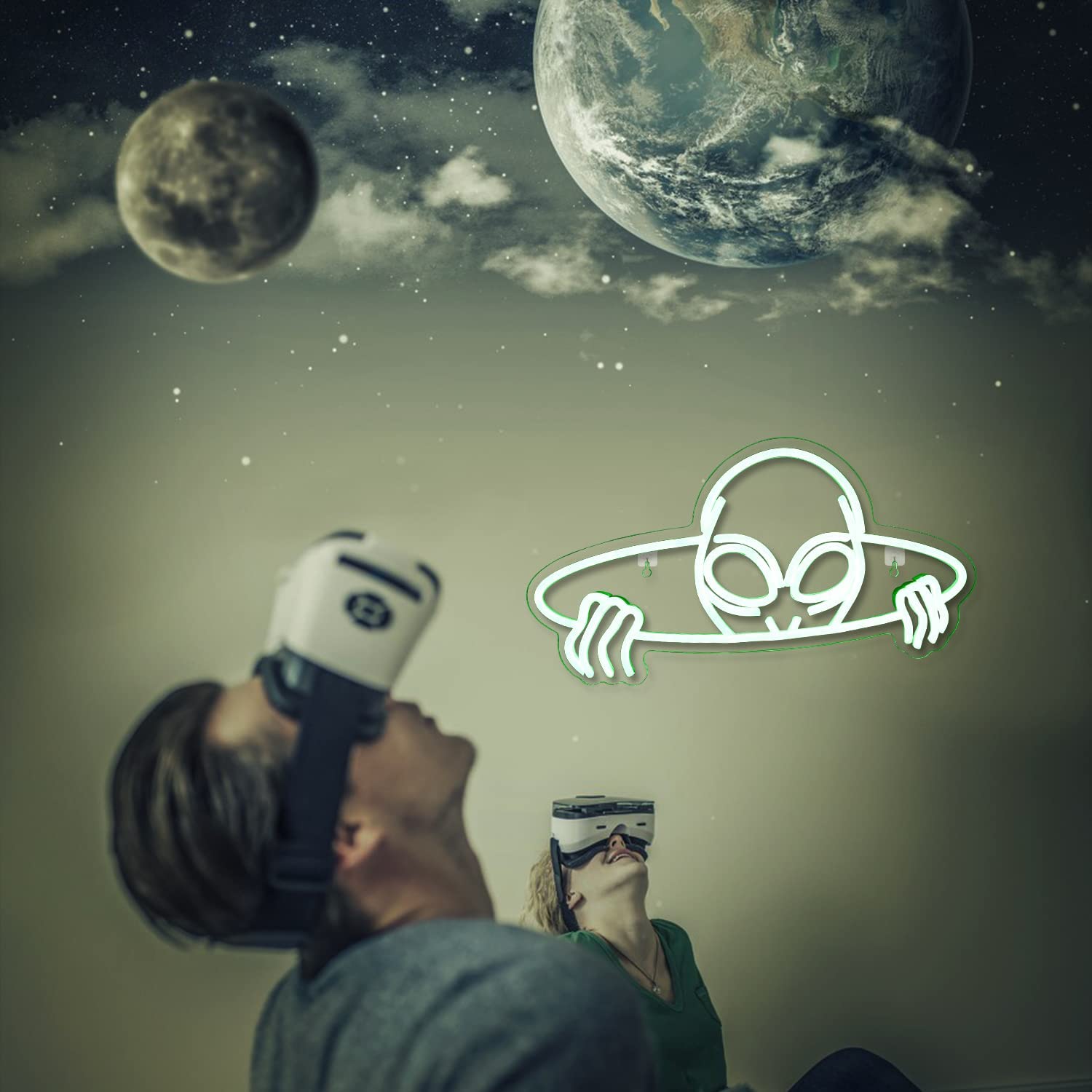 Add an extraterrestrial touch to your space with Green Alien Haunt Neon Signs. These unique and eye-catching neon signs feature a playful depiction of green aliens, bringing a sense of mystery and fun to any setting. Whether you're decorating a themed party, a sci-fi enthusiast's room, or a quirky bar, the Green Alien Haunt Neon Signs are sure to captivate attention. Their vibrant green glow and whimsical design create an otherworldly atmosphere that is perfect for those who love all things cosmic. Let your imagination take flight and embrace the intergalactic charm of Green Alien Haunt Neon Signs.