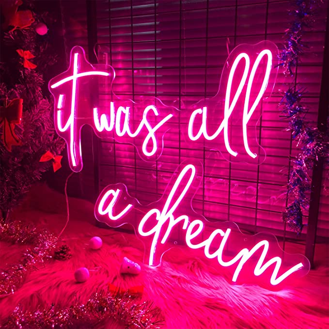 Turn your space into a dreamy sanctuary with the enchanting 'It Was All a Dream' Neon Sign. This captivating sign instantly adds a touch of magic and inspiration to any room. Its soft, glowing light creates a tranquil and serene ambiance, perfect for relaxation and reflection. Whether you're looking to create a cozy bedroom retreat or a calming meditation space, the 'It Was All a Dream' Neon Sign is the perfect addition. Let its soothing glow transport you to a world of endless possibilities and make your dreams a reality.