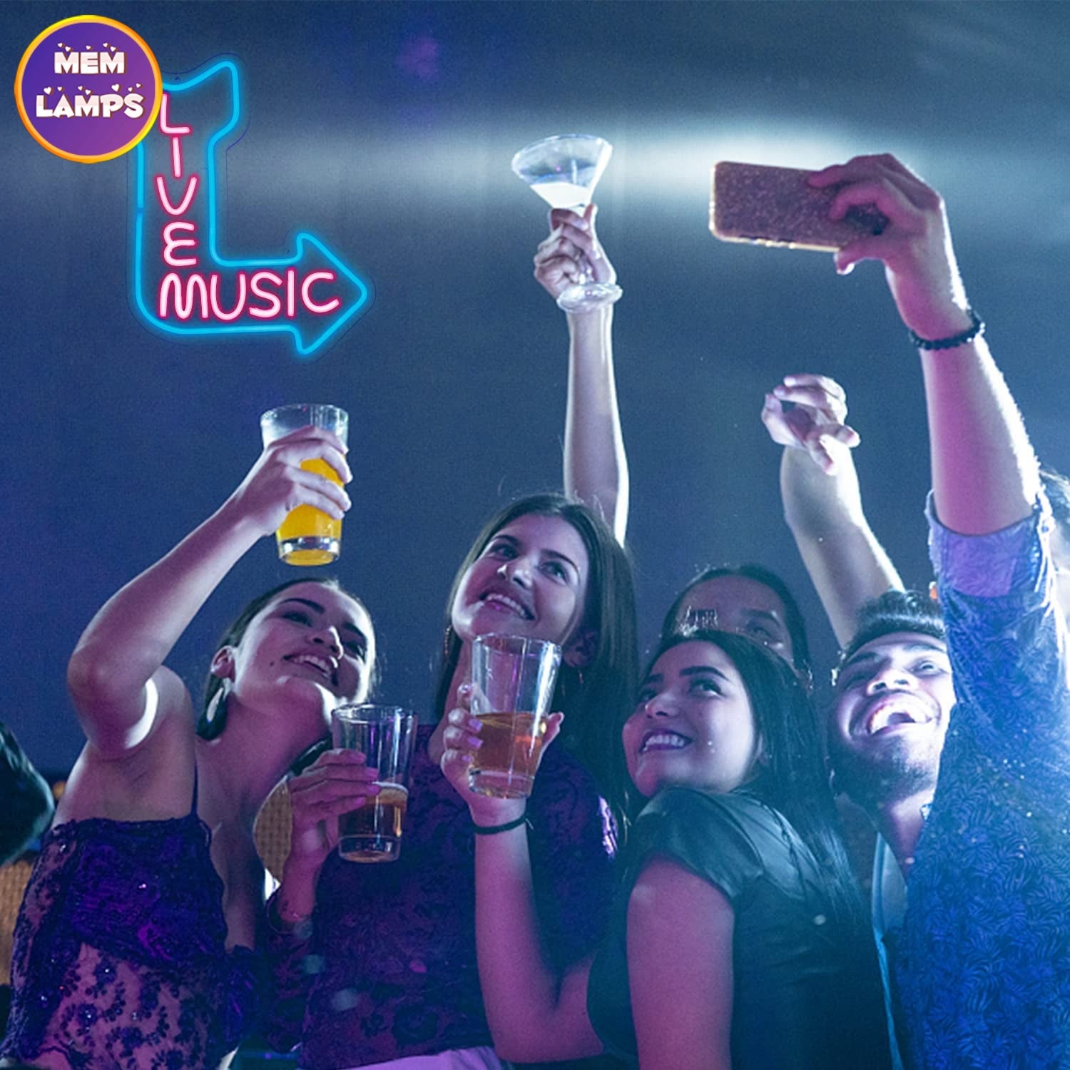 Add a touch of excitement and ambiance to your music venue or home with a Live Music Arrow Neon Sign. This vibrant neon sign features an arrow pointing towards the source of live music, creating a captivating focal point that draws attention and invites music lovers in. Whether you're a musician, a music venue owner, or a passionate fan, the Live Music Arrow Neon Sign adds a unique charm and sets the stage for unforgettable live music experiences. Let the glowing neon lights guide you to where the magic of live music comes alive.