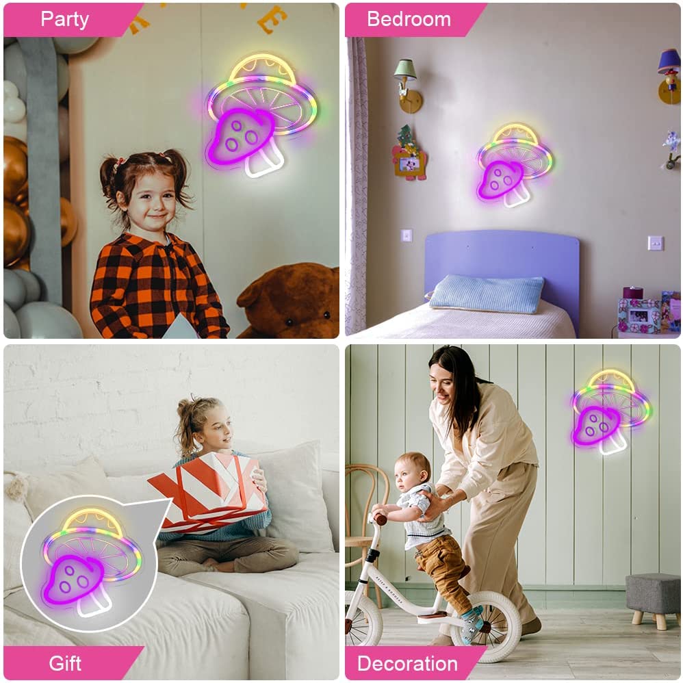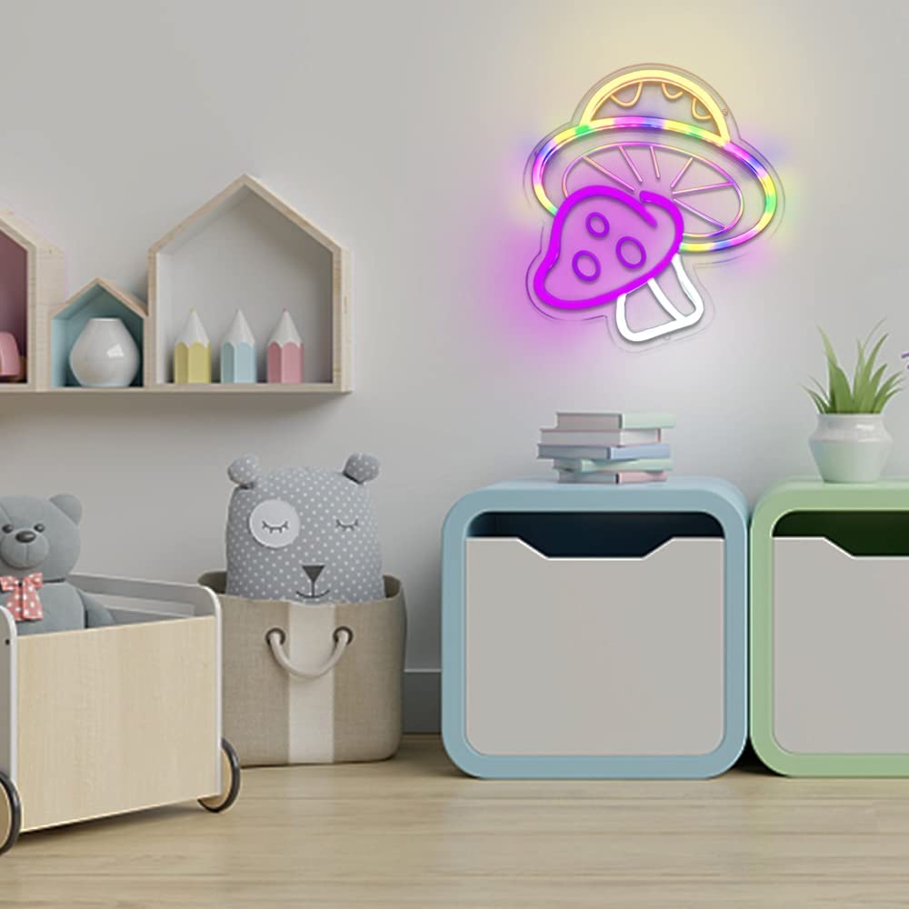 Transform your child's room into a magical wonderland with our Colored Mushroom LED Neon Sign. This enchanting sign features adorable mushroom shapes in vibrant colors, including pink, blue, and green. The soft LED lights emit a warm and inviting glow, creating a cozy and whimsical atmosphere that sparks your child's imagination. Hang it on the wall or place it on a shelf to instantly elevate the decor and bring a sense of joy and wonder to their space. The Colored Mushroom LED Neon Sign is not only a delightful addition to any kids' room but also makes for a perfect gift that will bring smiles and happiness to little ones.