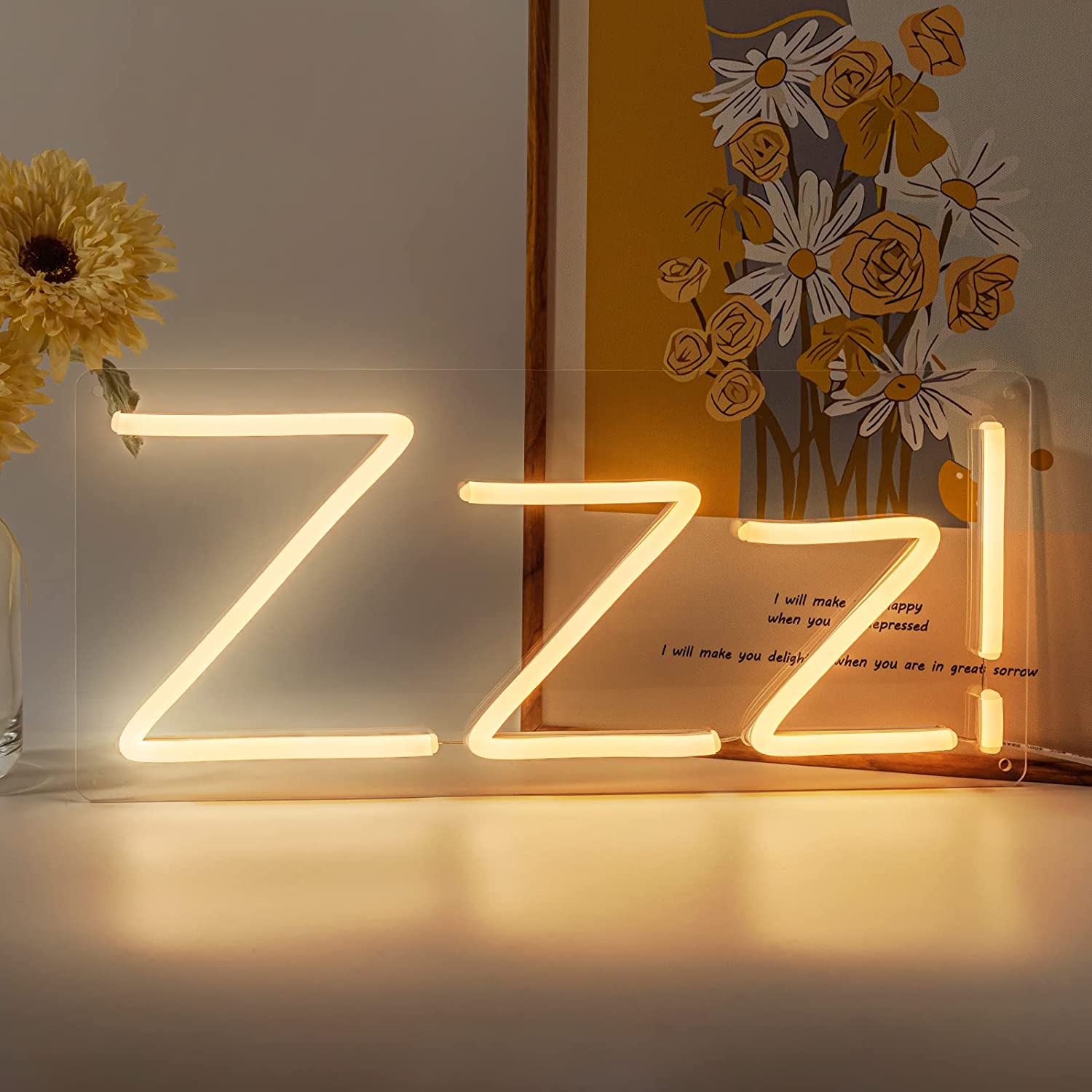 Create a soothing and tranquil environment in your bedroom with a Sleep ZZZ Neon Sign. This enchanting sign features the word "Sleep" accompanied by three Z's in mesmerizing neon lights, emitting a soft and calming glow. Hang it above your bed or place it on a nightstand to add a touch of relaxation to your sleep space. The Sleep ZZZ Neon Sign serves as a gentle reminder to unwind and embrace a peaceful night's rest. Crafted with high-quality materials, this neon sign is built to last and can be easily plugged in for instant ambiance. Say goodbye to restless nights and welcome a blissful slumber with the Sleep ZZZ Neon Sign.