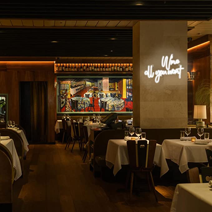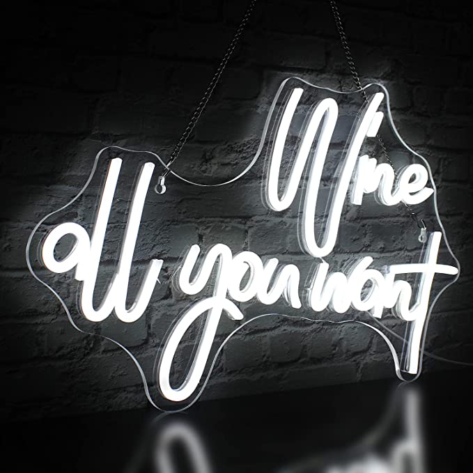 Embrace your love for wine and create a captivating ambiance with a Wine All You Want Neon Sign. This vibrant and enticing neon sign is perfect for wine enthusiasts, bars, and home bars alike. The bold and colorful neon lights draw attention and set the mood for a night of relaxation and enjoyment. Hang it in your wine cellar, kitchen, or dining area to showcase your passion for the art of winemaking. The Wine All You Want Neon Sign not only adds a touch of elegance to your space but also serves as a reminder to unwind and savor every sip. Whether you're hosting a wine tasting event or simply unwinding after a long day, this neon sign is sure to elevate your wine-drinking experience. Cheers to a life filled with good wine and great company!